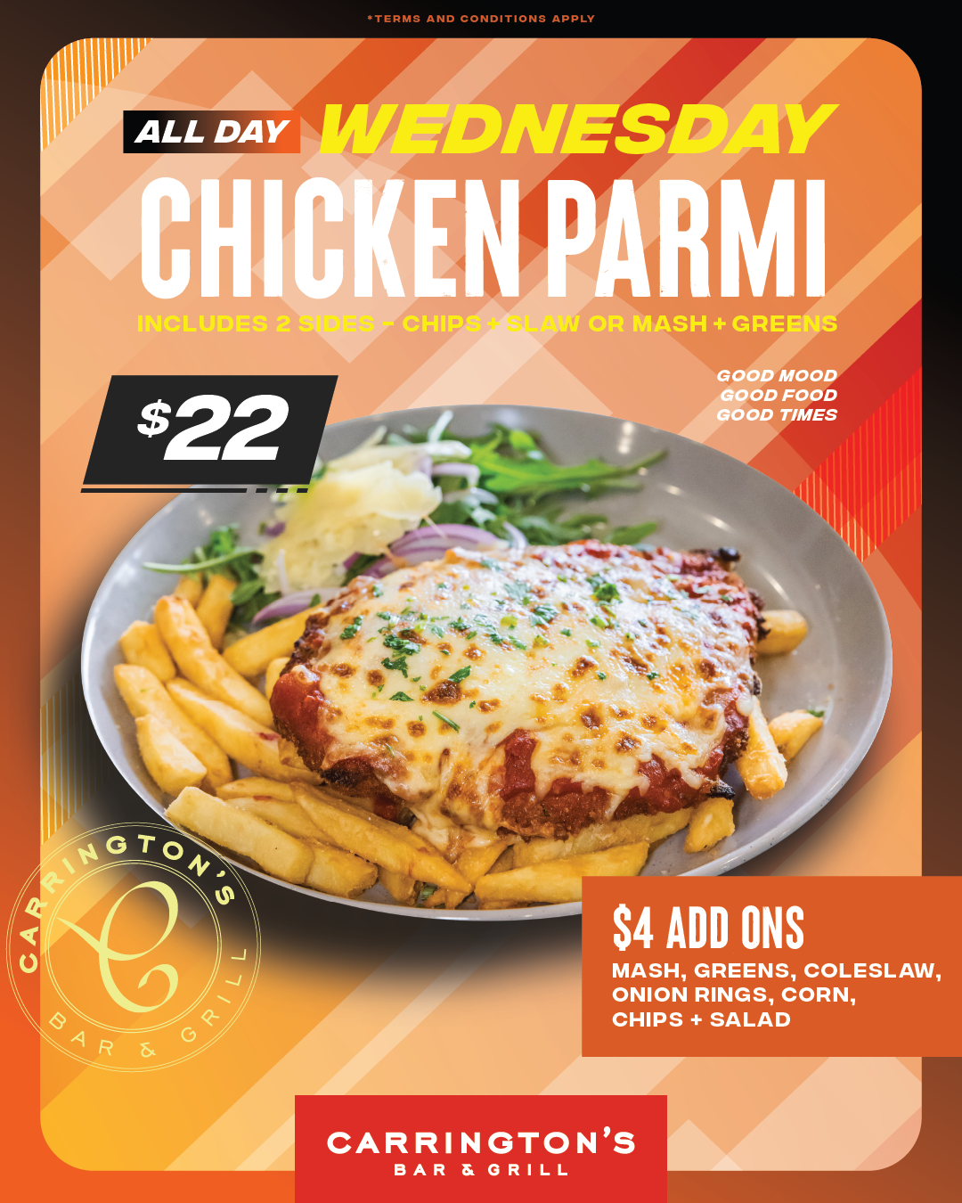 In March 2022, Carrington’s Bar & Grill was established with Ashley, Lorene and their family deciding to create a pub in Hamilton Hill where people of all ages could come and enjoy themselves. With their motto being Good Mood, Good Food & Good Times they have truly consolidated the pub to now being one of Perth’s most favourite places to visit.